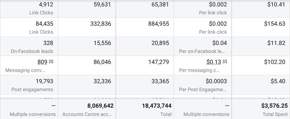 Mastered budget efficiency by driving 884K link clicks at a $0.002 CPC while maintaining a 14.6M total reach.