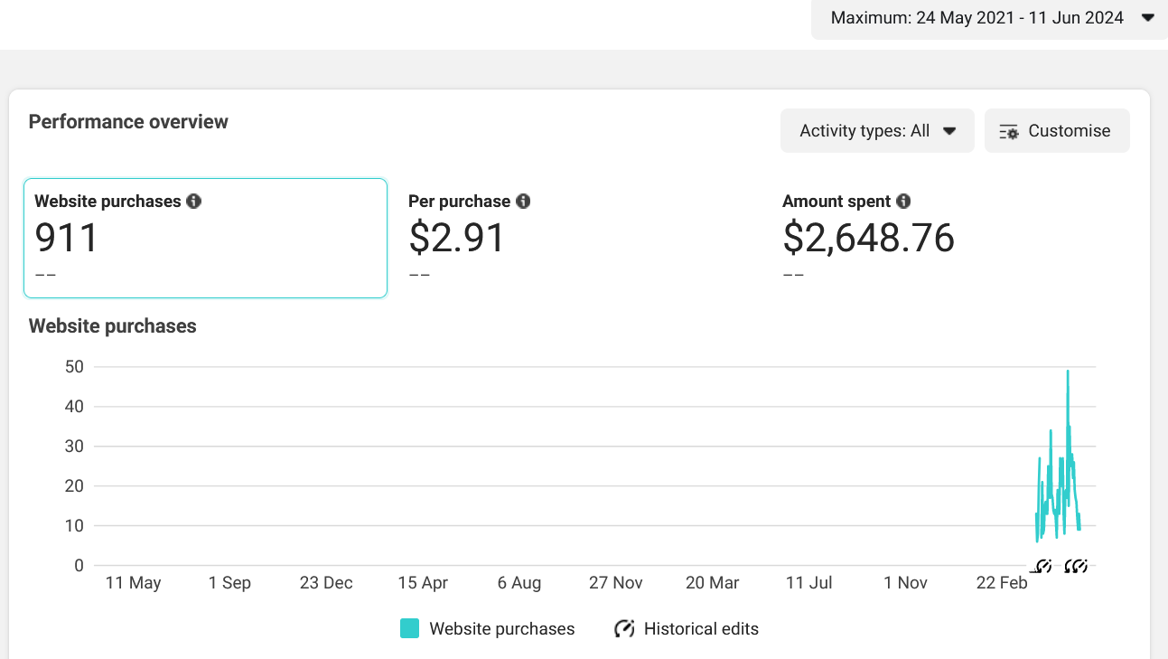 Achieved 911 website purchases and 15k+ leads, leveraging a $0.002 CPC to reach 14.6M unique users.
